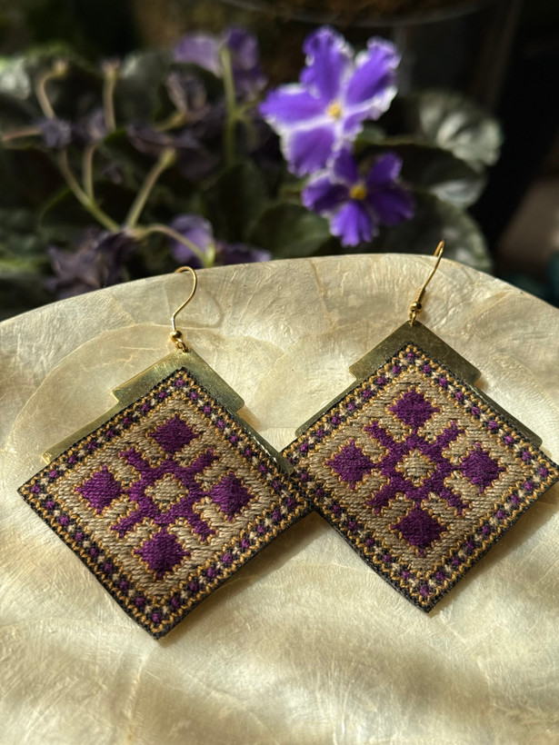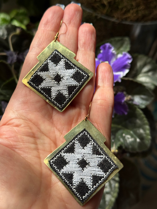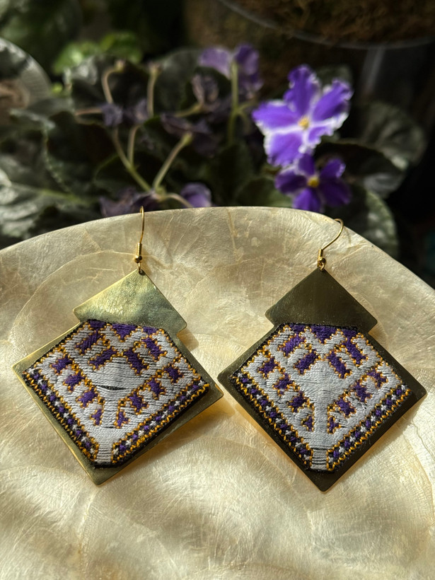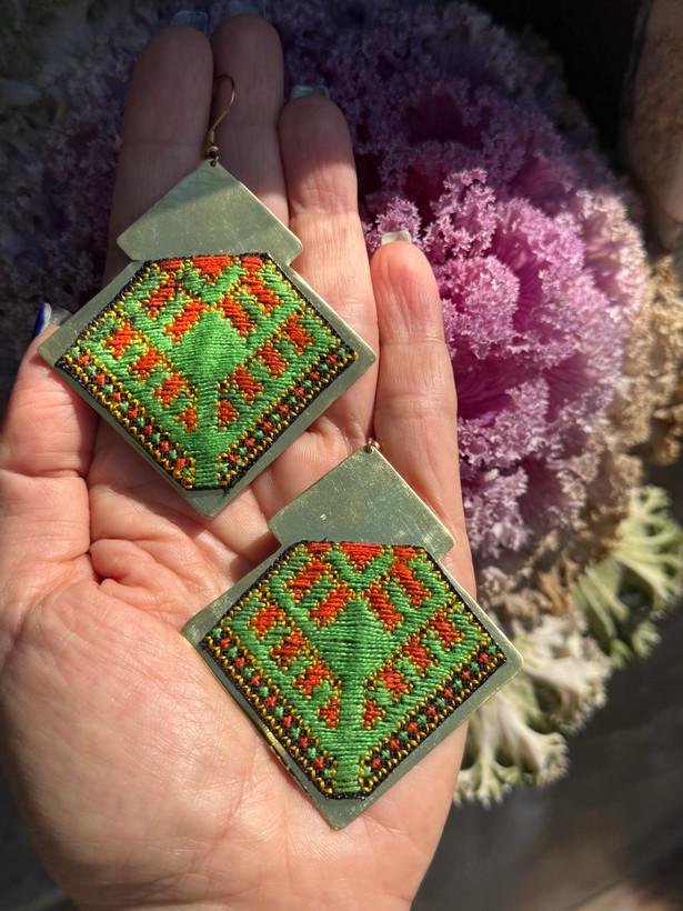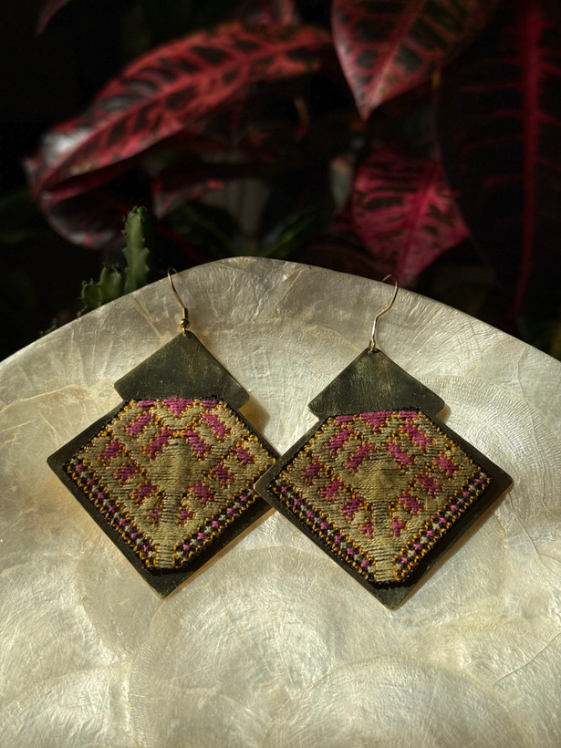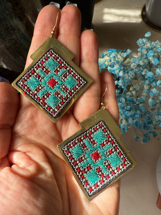 گوشواره جنس برنج با سوزندوزی دستدوز ابریشم
