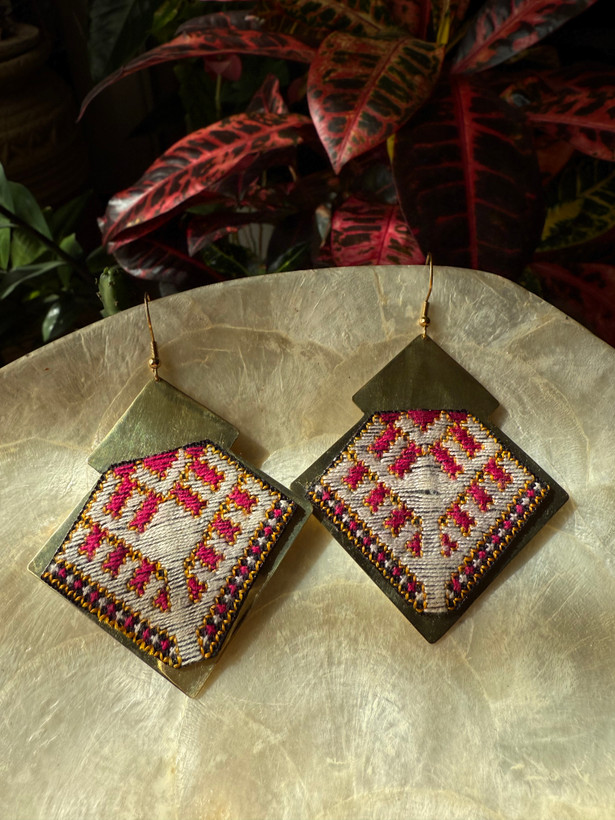 گوشواره برنجی با سوزندوزی ابریشم