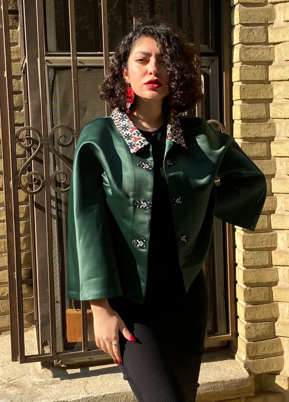 کت ساتن با سوزندوزی دستدوز ابریشم