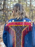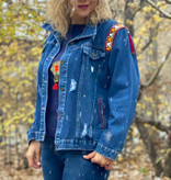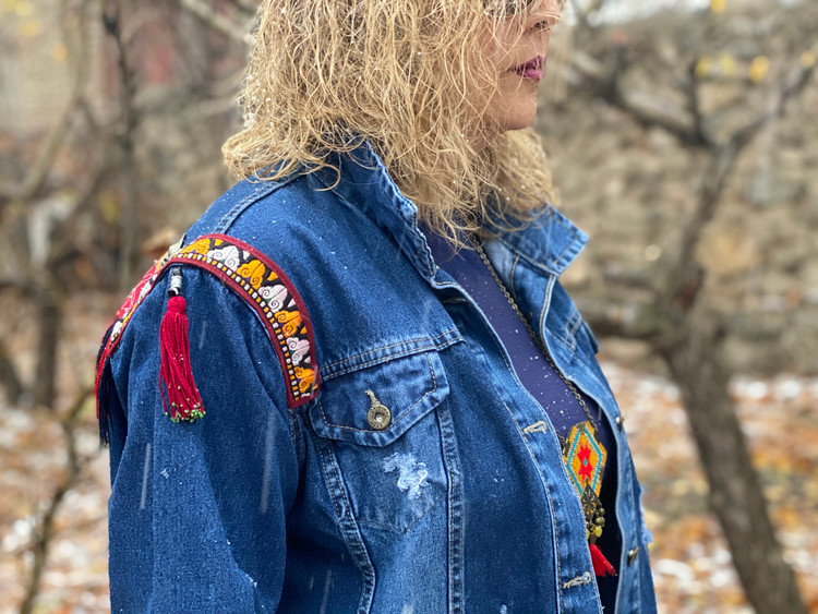 کت جین با سوزندوزیهای دستدوز و آنتیک و اکسسوریهای ورشو و قدیمی تکنسخه و فری سایز طراحی و اجرای اینکار به صورت تک نسخه میباشد