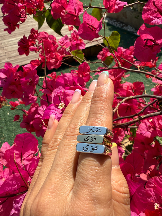 دیدن محصولات مرتبطانگشترهای کالیگرافی استیل با آبکاری نقره رنگش ثابت و اصلا تغییر نمیکنه بسیار شیک و خاصه با قیمت عالی