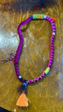 گردنبند مخمل با سوزندوزی دستدوز که برای دستبند هم قابل استفاده است تک نسخه میباشد و دستساز است .سوزندوزی ابریشم به کار رفته در این گردن آویز توسط بانوان سیستان بلوچستان دوخته شده است .