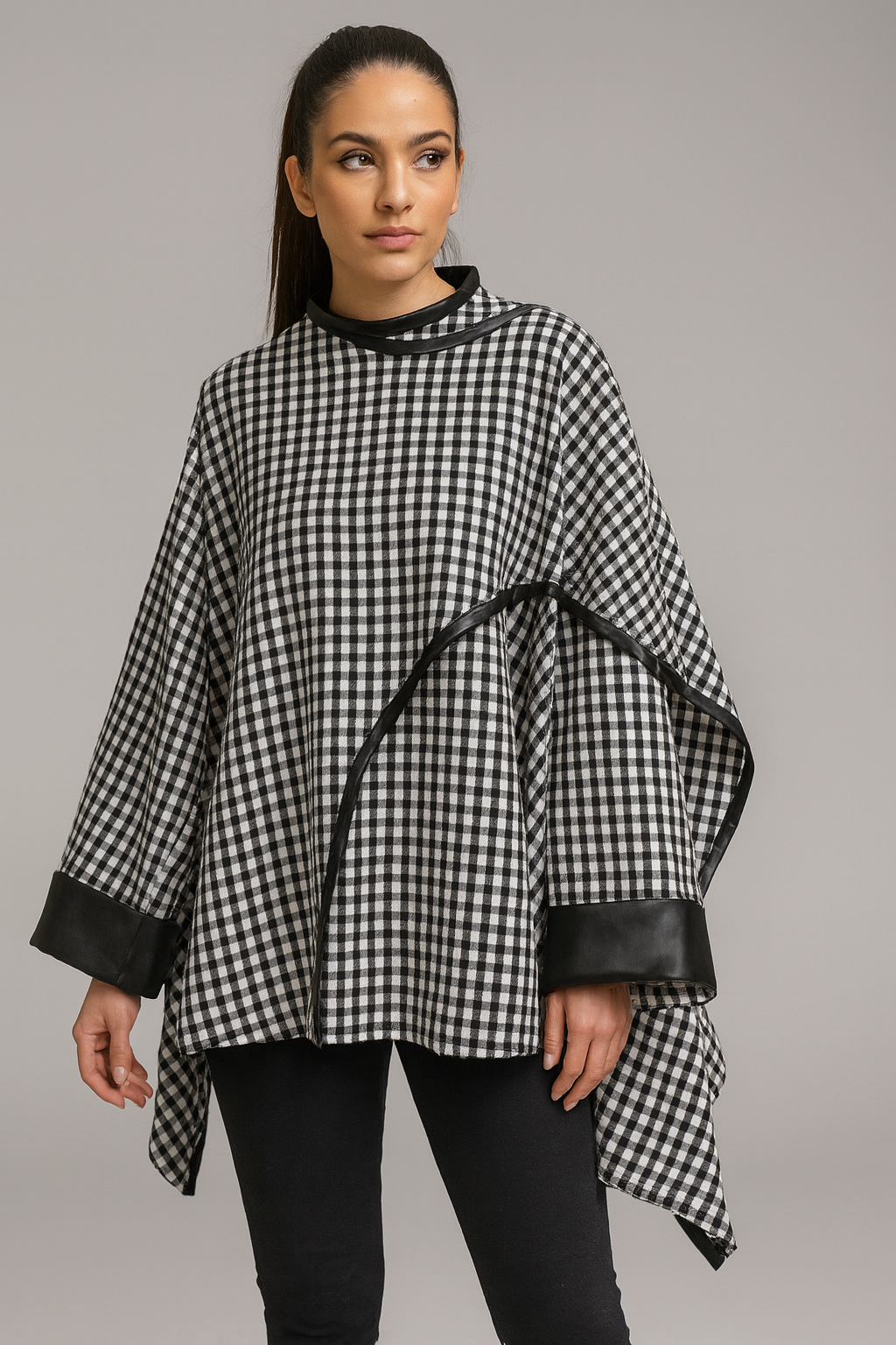 کت با یقه مدل شنل و دور یقه و دور آستین با چرم کار شده و به صورت تکنسخه طراحی و اجرا شده