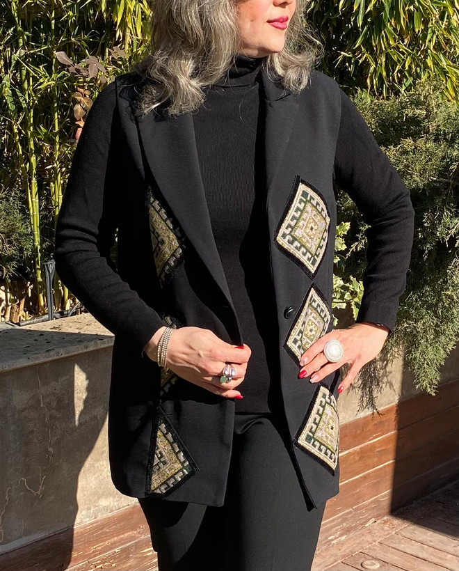 سوزندوزی بلوچ فقط یک محصول نیست ، تار وپود آن پر از عشق و تجربه و فرهنگ و تاریخ سرزمین است . داشتن این گنجینه ،داشتن هزاران سال هویت این قوم است Gilet con i pezzi di ricamo di seta fatto a mano جلیقه کرپ با سوزندوزی دستدوز ابریشم فری سایز —————————————————————— پرو در منزل داریم تعویض داریم بعد از انتخاب پرداخت درب منزل هم داریم پس با خیال راحت کن —————————————————— Worldwide shipping —————————————————— For more info please contact us 09028881745 —————————————————— #