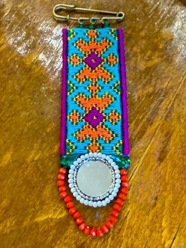 سنجاق سینه دستساز با سوزندوزی دستدوز و مروارید و منجوق و سنگ