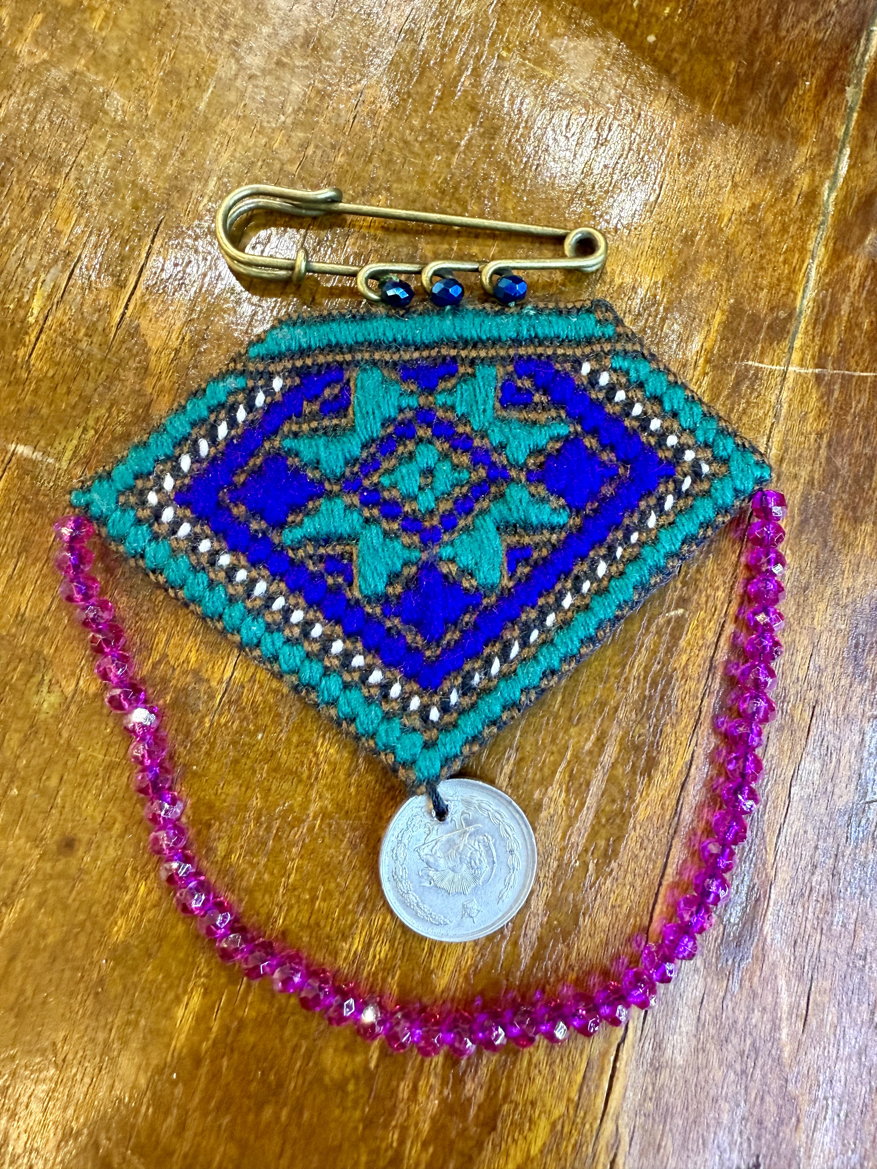 سنجاق سینه دستساز با سوزندوزی دستدوز و منجوق و سکه تکنسخه