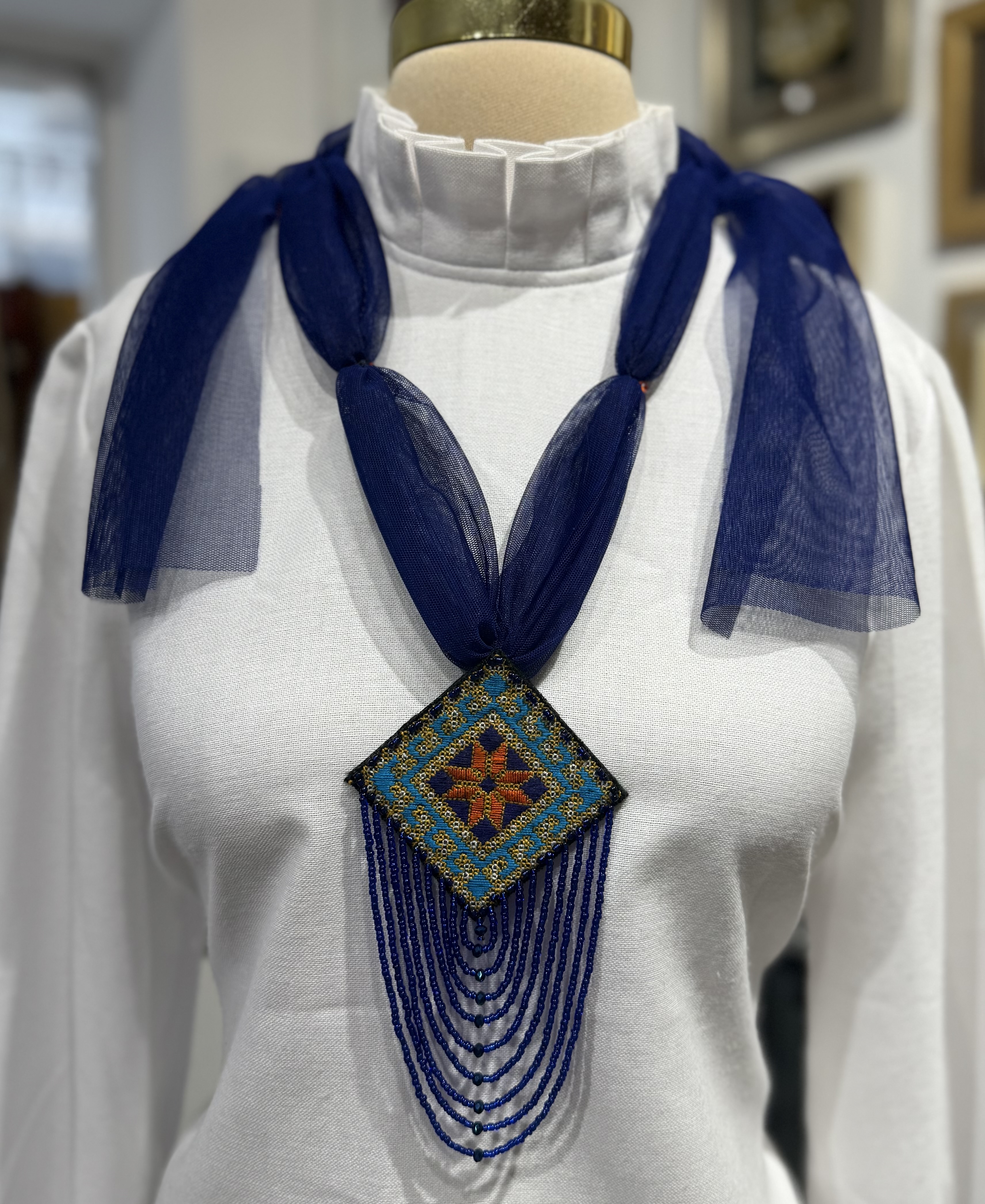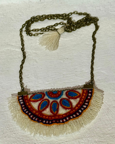 گردنبند دستساز با سوزندوزی ابریشم دستدوز و کاملا خاص و تک نسخه