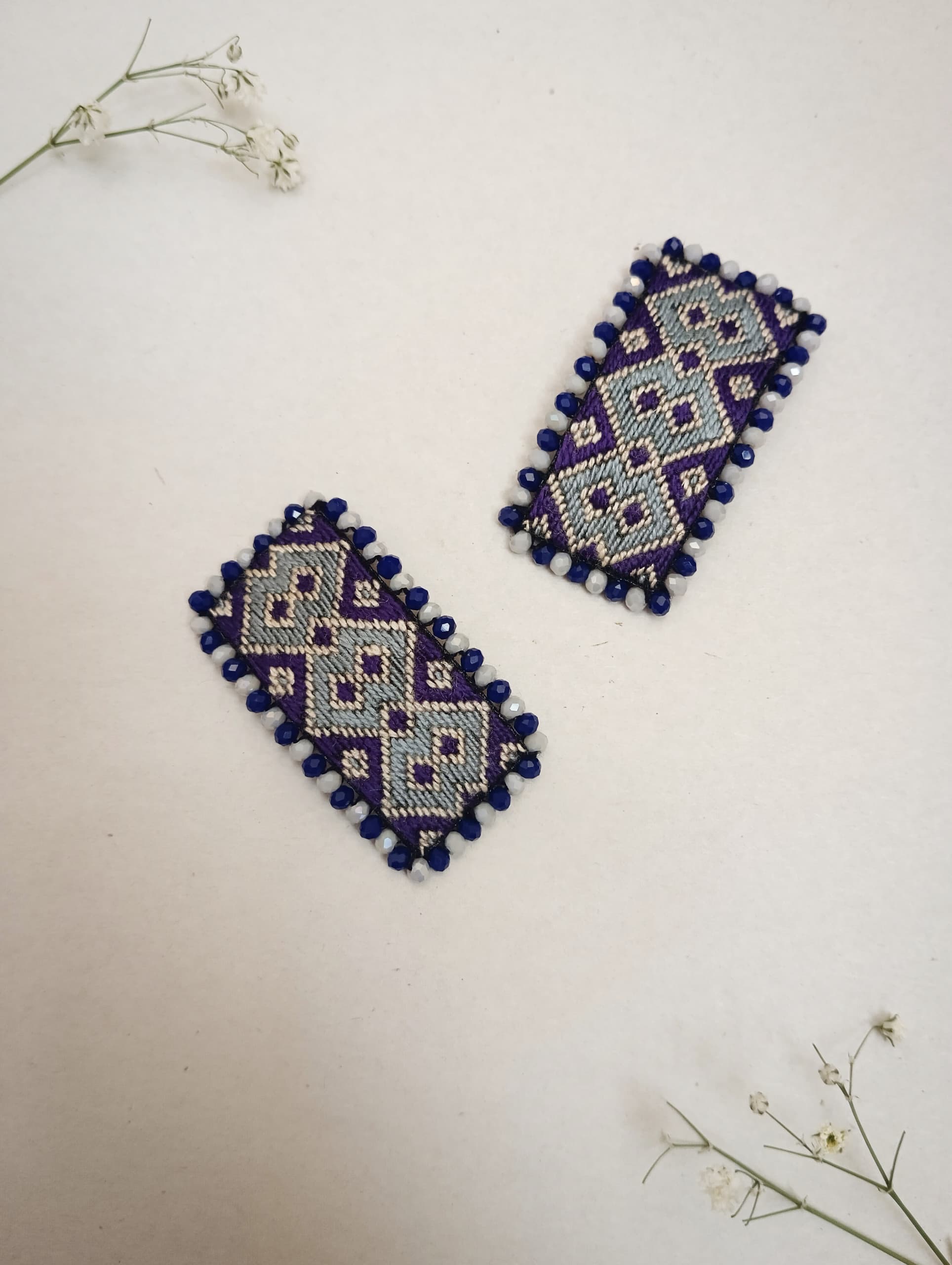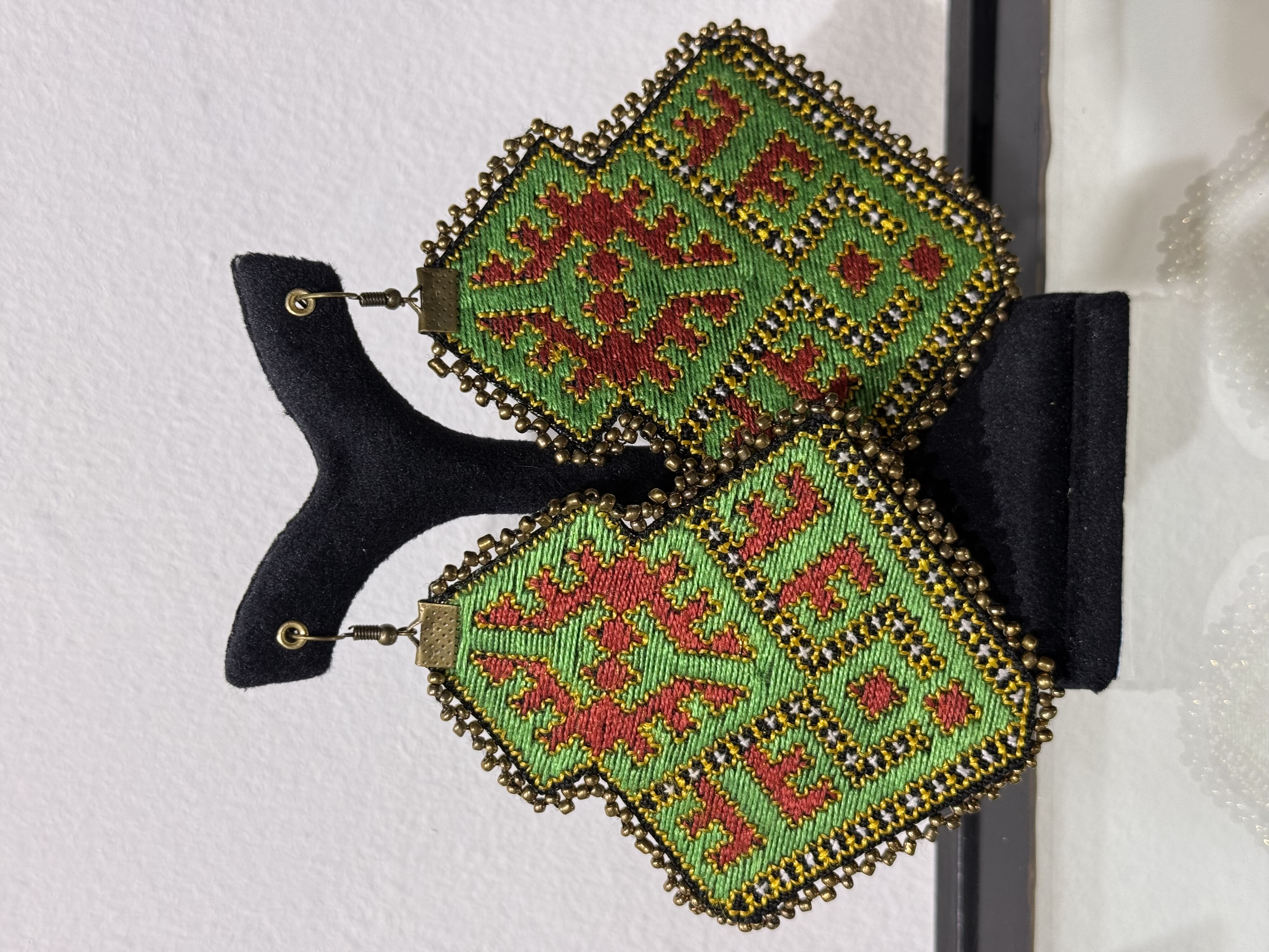 گوشواره سوزندوزی دستدوز با منجوق دستساز و تک نسخه