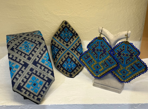 ست کروات و پوشت و گوشواره سوزندوزی دستدوز تمام ابریشم