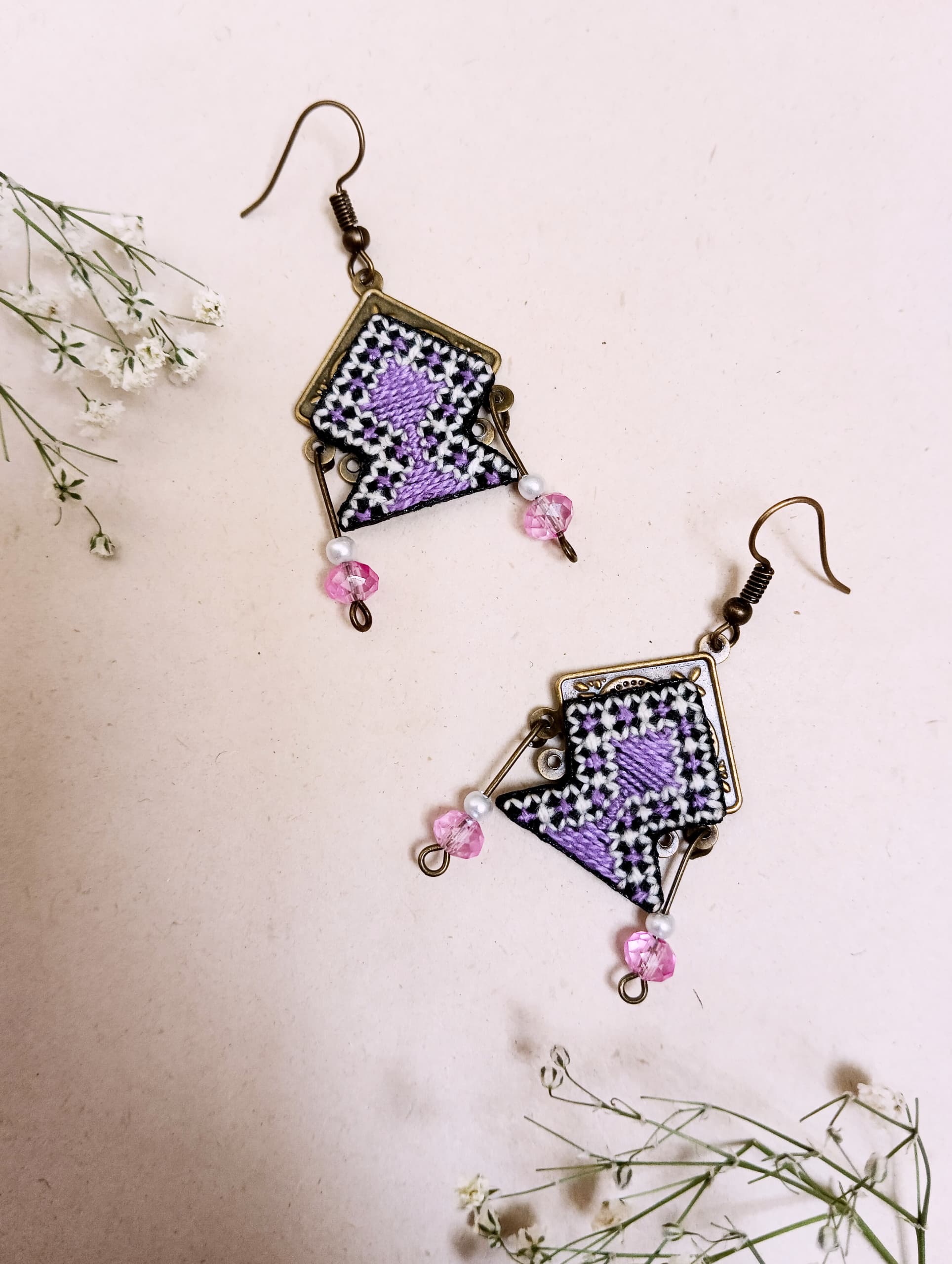 گوشواره دستساز و دستدوز سوزندوزی ابریشم